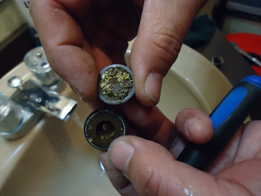 吐水口のストレーナにこんなにゴミが詰まっていました。