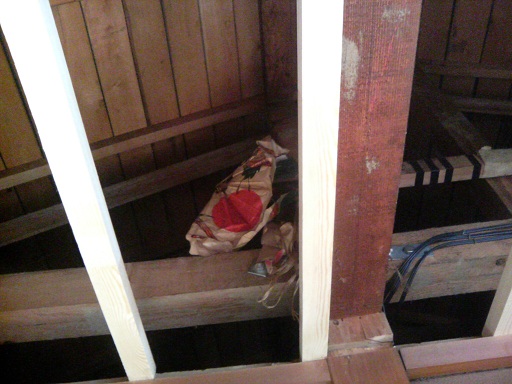 断熱材の下にも糞とミイラ化したコウモリが隠れていました。