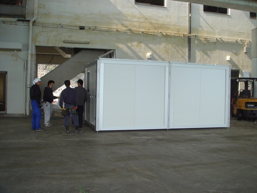 魚市場にプレハブを建てます。