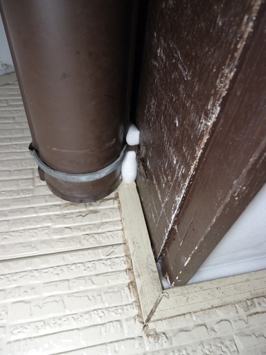 雨どいのところがビンゴでした。詰めたバックアップ材が見えます。