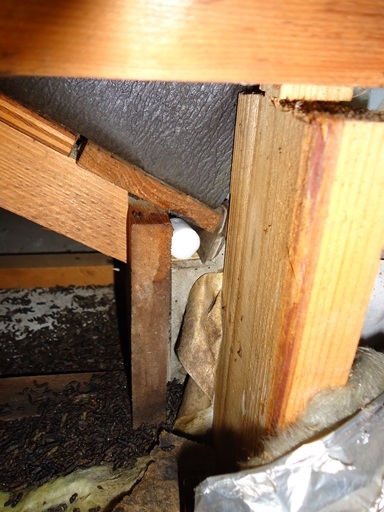 断熱材の下にも糞とミイラ化したコウモリが隠れていました。