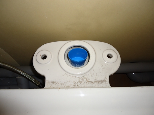 便器のうしろの板は簡単に取り外せ、取り外すとタンクが現れました。