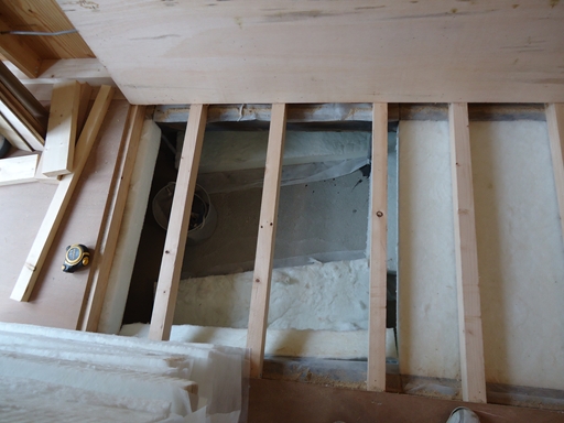 コウモリが入れるのかと思うくらいの隙間を見つけ、バックアップ材を詰めました。