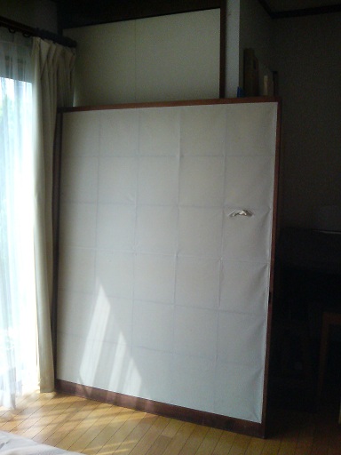 桟の間に足を踏み入れて糊を塗りました。