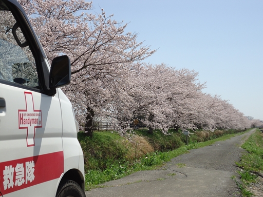 お客さまを乗せ現場へ急行、難なくスペアタイヤに交換し任務終了!