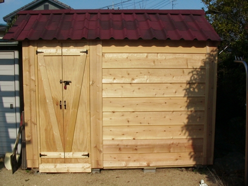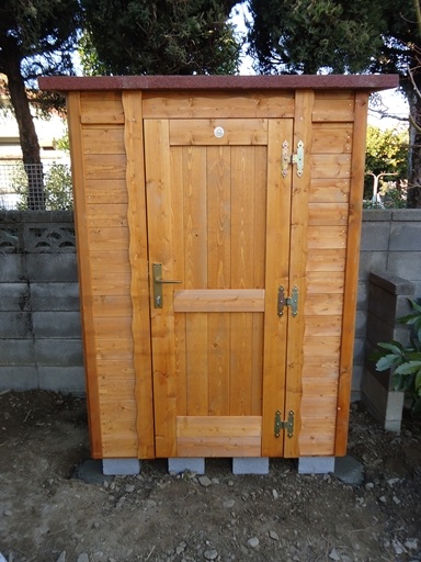 床・正面・側面・背面・屋根の6つのパネルで構成されていて 施工が容易です。 ビスが半分打ち込んだ状態で梱包されていますので、 あとは手順に従って完全に打ち込めば完成します。 組立の時間より、梱包を解く作業と基礎の施工に時間がかかります。 また、パネルが重いので一人での施工は難しいかな。 このサイズ(1300×750×1830)で 10万円以上するようです。 私の自作の物置です。材料費は10万円もしませんでした。 サイズ:2700×1800×2400 こんな感じの物置なら作成できますので、ご相談ください。