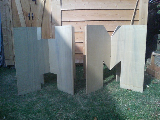 中をくり抜こうと思いましたが、作業台をHandymanのHとMの字に加工しました。