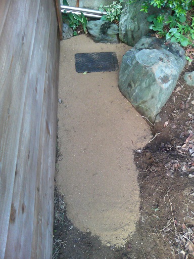 何とか敷けるくらいにハンマーで砕きました。