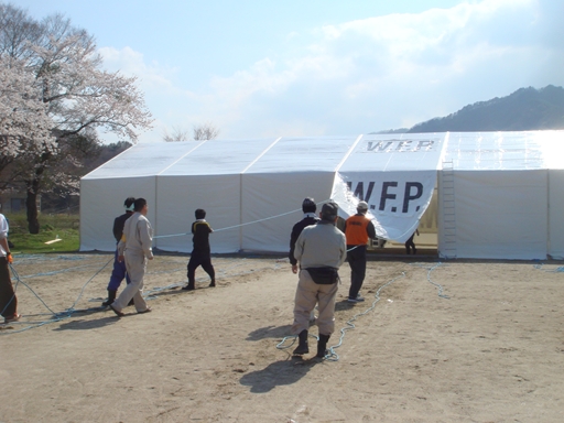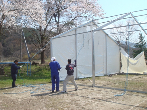 山田町の公園と小学校に1基ずつテントを建てました。